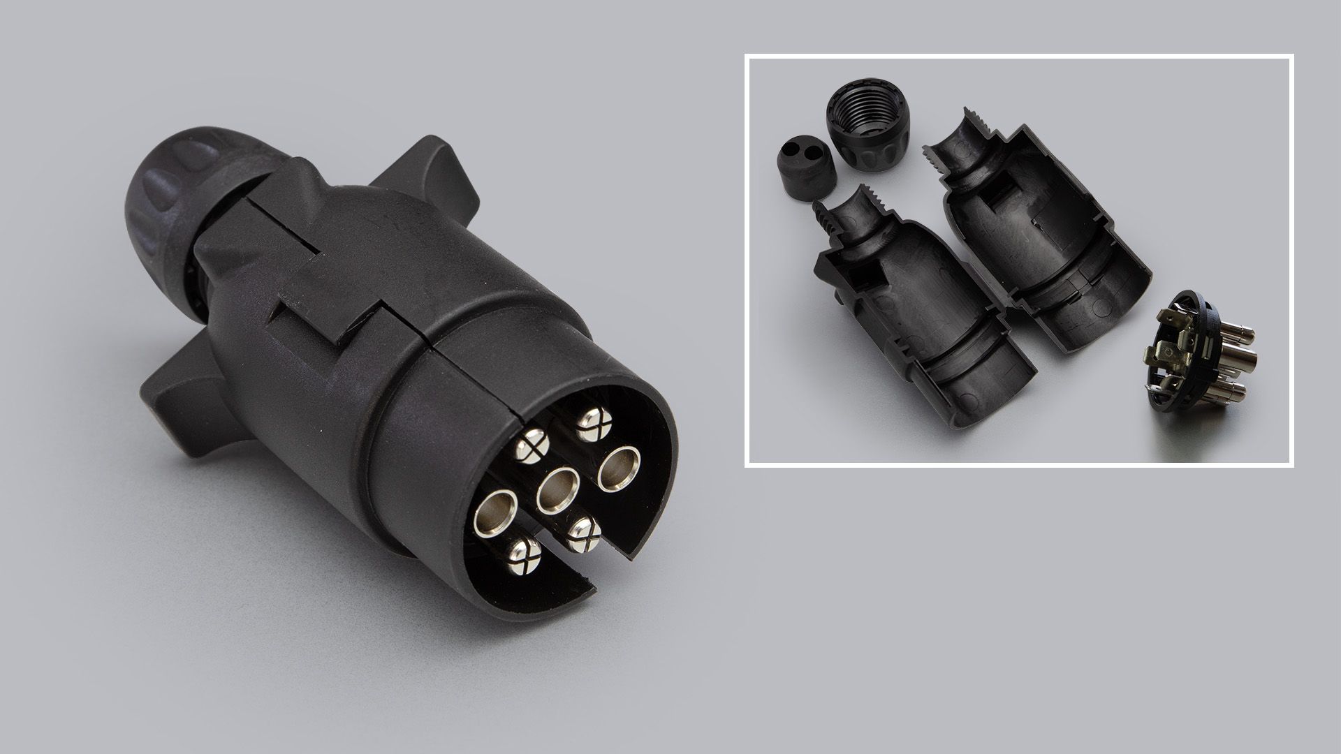 | 606 | 7-polige Steckdose | Mit Aluminiumgehäuse, Schraubanschlussdrähte. |
